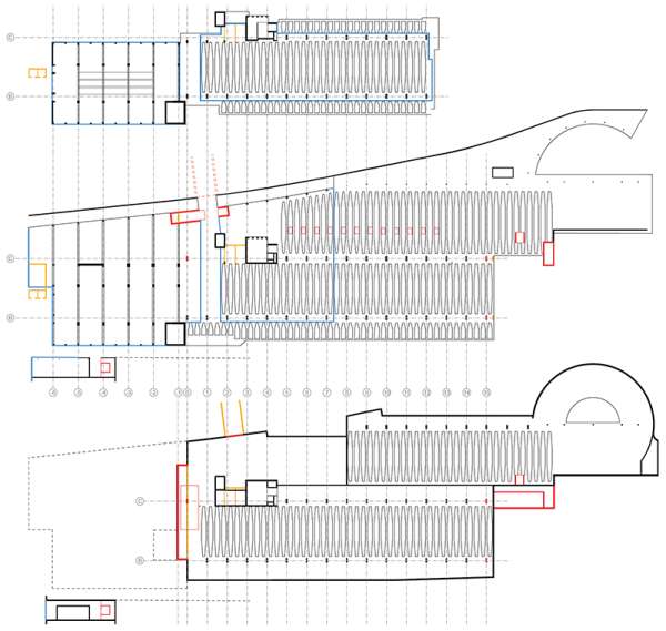 Der Moser- und der Häfeli-Moser-Steiger-Bau sind beide Zeugen ihrer Zeit; sie bilden die Ausgangslage für das denkmalpflegerische Sanierungskonzept. Mit der energetischen Erneuerung der Gebäudehülle auf der Innenseite kann der Charakter der Fassaden erhalten werden. Als Erkennungsmerkmal des Areals wird der Sonnenschutz bei beiden Bauten durch rote Stoffstoren vereinheitlicht. Im Inneren werden die teilweise sehr interessanten Beton-Tragstrukturen freigelegt. So können die Kommerzflächen in ästhetischer und finanzieller Hinsicht von einer zeitgemässen Rohbauästhetik profitieren.